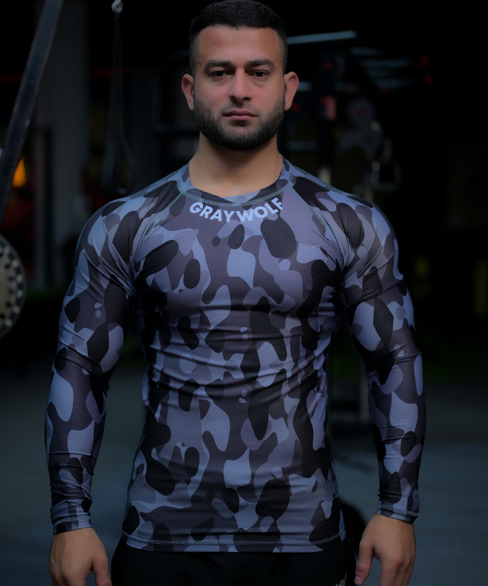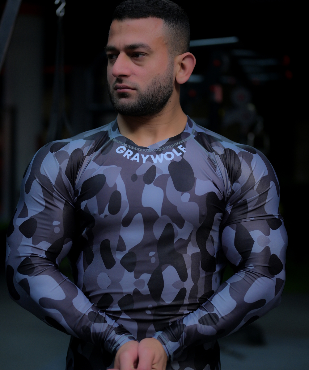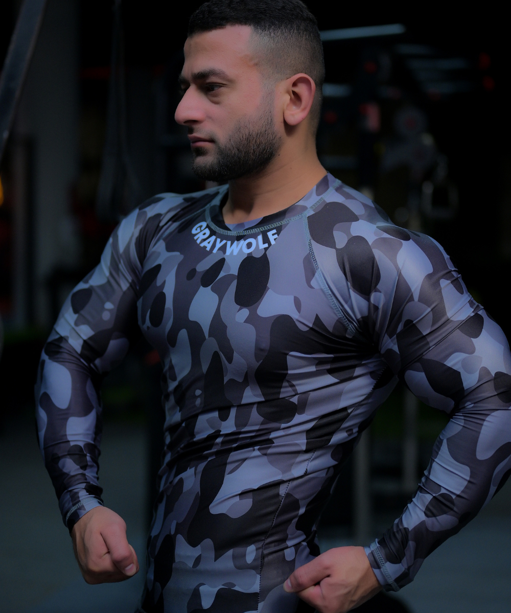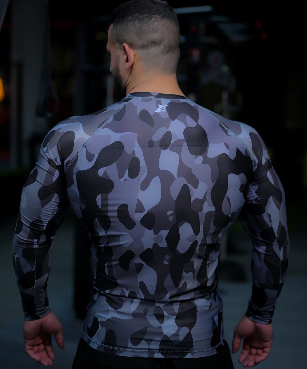 Bring your inner superhero out with these compression tees. Made with stretchy and fitted compression fabric. The jacquard style has the pattern incorporated into the weave of the fabric. The structure of the tee is designed to stand and help support heavy lift movements.