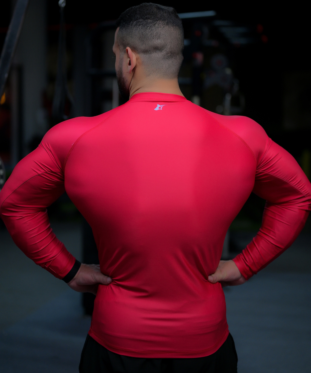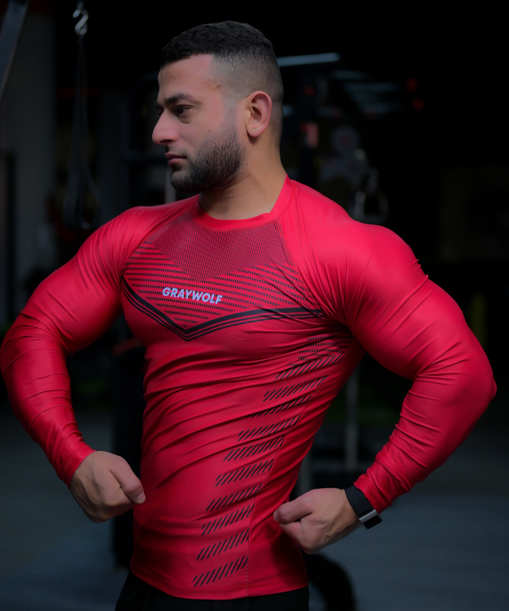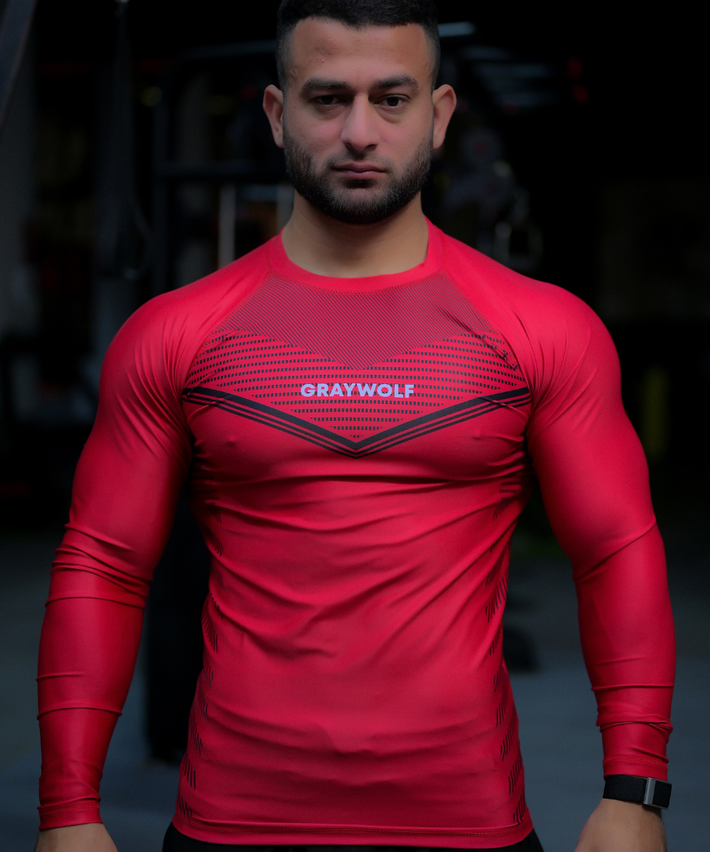 Bring your inner superhero out with these compression tees. Made with stretchy and fitted compression fabric. The jacquard style has the pattern incorporated into the weave of the fabric. The structure of the tee is designed to stand and help support heavy lift movements.