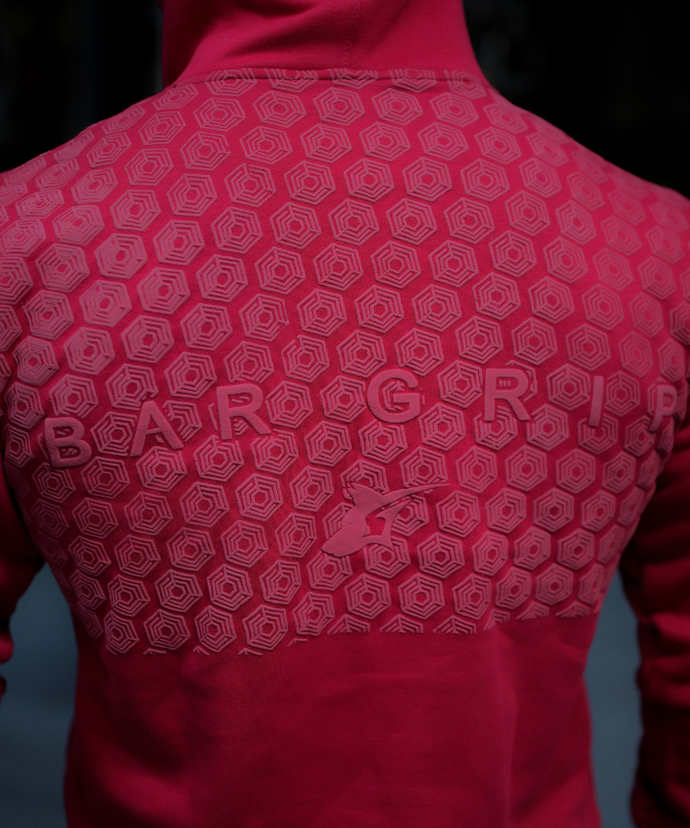 Constructed from 100% cotton, 350 GSM heavyweight fleece, it delivers a premium feel with durability and structure that holds up under the bar. The standout feature — a raised BarGrip puff print across the upper back — ensures maximum friction between fabric and barbell during heavy lifts, reducing slip and enhancing stability.